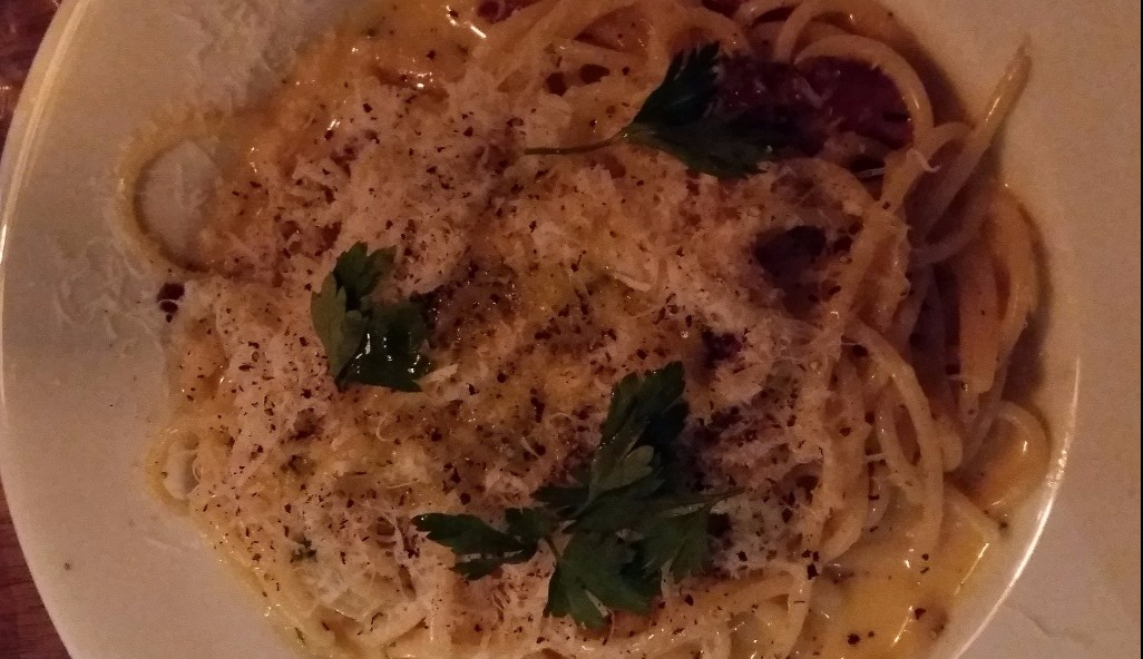 O carbonara leva um bocado de suco de limão siciliano, é inesperado, é delicioso. No cardápio, explicam que cada prato foi criado para um tipo específico de massa e escrevem decididos em dupla negação: “não se pode modificar ou alterar nenhum deles”. Como dupla negativa vira afirmativa, o próprio garçom voluntariamente oferece trocar penne por spaghetti. Pode alterar sim, a foto não me deixa mentir. Ainda bem. Penne alla carbonara? Acho que preciso ir para Itália me atualizar.