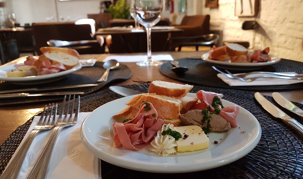 Pegamos as duas opções de vinhos em taça, o Etchart Privado torrontés 2017 e o Caballero Reserva cabernet sauvignon 2015. Ambos bons, equilibrados e ótimos custos-benefícios. De couvert, fatias frescas, quentes e crocantes de baguete; uma surpreendente ricota com especiarias; os icônicos patê de fígado, mortadela e manteiga com pimenta rosa. São combinações simples, assertivas e deliciosas, fogem do comum sem grandes pretensões. A salada de folhas, fígado de frango frito na sálvia, molho de mostarda dijon e parmesão é a cara da Pâtissier: terrosa, umami, reconfortante. Uma salada aconchegante? Só o Marcelo mesmo. Pena que conforto não combina com acidez, picância ou frescor, o molho de mostarda quase não aparece, senti falta.
