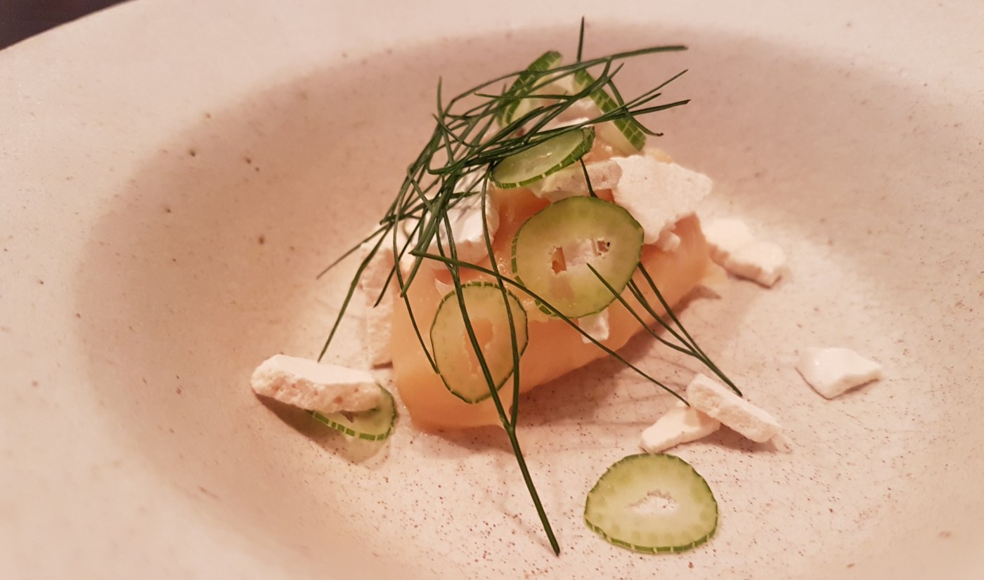 Tá, miçangas, miçangas, mas e a comida? Bem, de entrada, os clientes do Del Barbiere recebiam algo como cenoura, aipo, limão-bergamota, ricota, noz-pecã e brotos de ervilha. A doçura da cenoura é pronunciada e enriquecida aromaticamente pela sua caramelização. Para quebrar o doce, há o frescor herbáceo do aipo e a acidez do limão-bergamota na ricota, ambos complexos e aromáticos. A cremosidade da ricota é a ponte entre os elementos. A crocância e o terroso das nozes adicionam mais uma camada de textura e sabor ao prato. Por fim, os brotos de ervilha dão algo para mastigar, para aumentar a permanência. Todas as intensidades parelhas, todos os elementos harmônicos. É uma obra de arte.