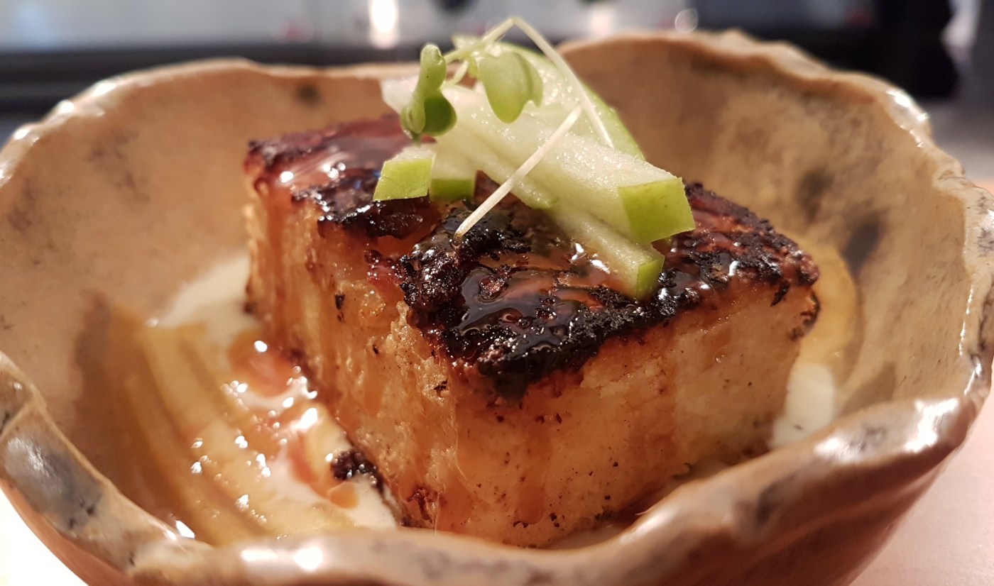A hortelã e as especiarias aparecem mais que a própria fruta no gaspacho de goiaba. Ao menos, a acidez da genial goiaba fermentada é inusitada e prazerosa. O lindo brioche tinha riqueza, especialmente os sabores do ovo e da manteiga. Mas, por algum motivo, a massa reluta em virar bolus. Há também algo pungente que me incomoda. Algo da fermentação? Um ovo podre? Não sei. Nem consegui descrever, mas incomodou.