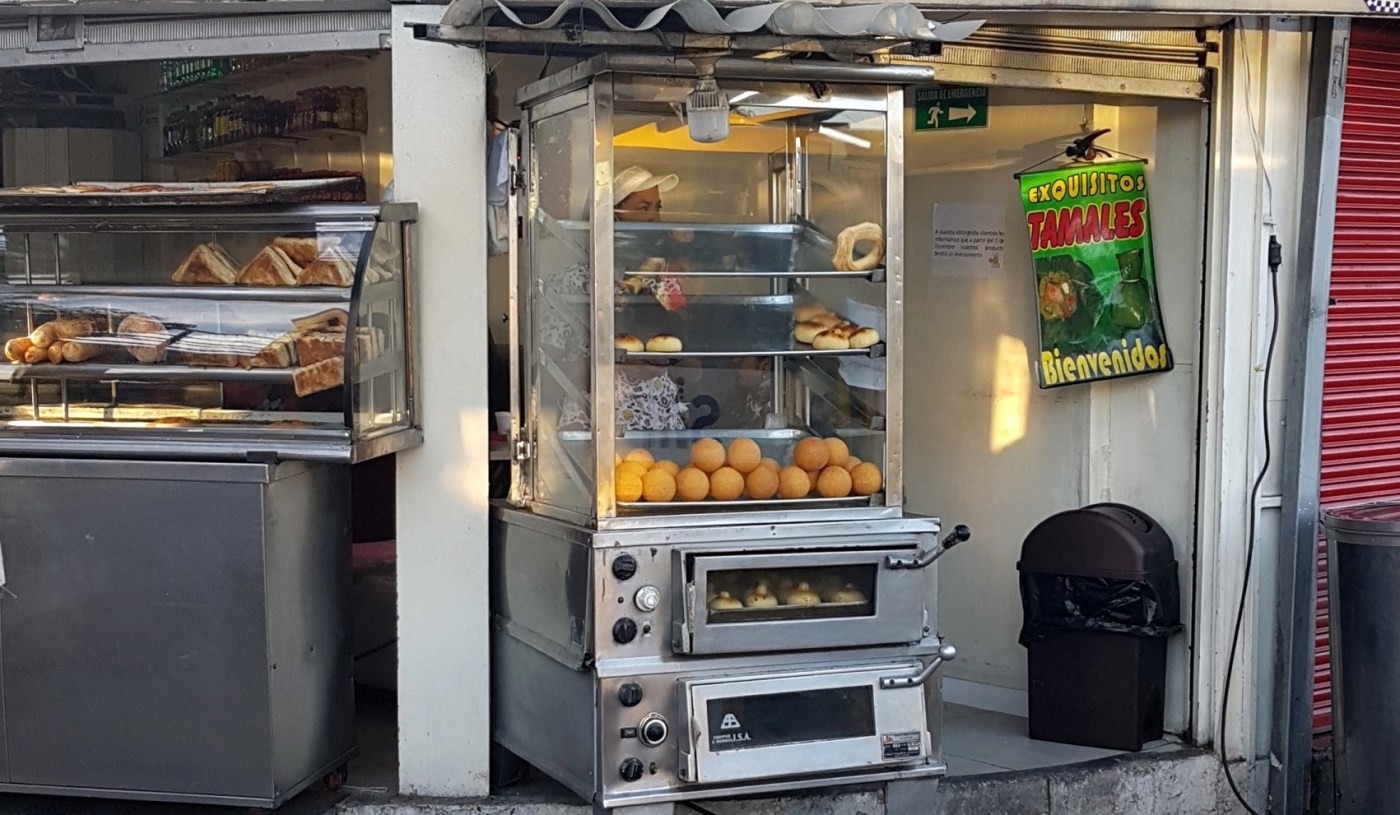 Seis da manhã, eu passava pela cinzenta Carreira 68 de Bogotá. Uma cafeteria movimentada me chama a atenção, eu resolvo arriscar e pulo fora do ônibus no próximo ponto. Fico encantando com o dourado vibrante da crosta e a elasticidade infinita do interior esponjoso da buñuela. Os chiffons japoneses babam de inveja. É preciso que a temperatura do óleo esteja certeira para conseguir essa crosta magnífica e um cozimento tão homogêneo de uma bolota enorme dessas. O pandebono choca um brasileiro desprevenido pela doçura e acidez. Um pão de queijo que combina o máximo da textura úmida e pegajosa do polvilho doce, com o máximo de aeração e acidez do polvilho azedo. Num forno bem quente, fica dourado em cima e embaixo, o tempo encurta, o interior não resseca, o sabor de queijo continua presente e agradável. Todo mundo só fala de receita e ingredientes secretos, mas muitas vezes o que torna a comida extraordinária é o cuidado com a temperatura do óleo e do forno. Comida de rua boa assim restaura minha fé na humanidade, nem tudo está perdido.