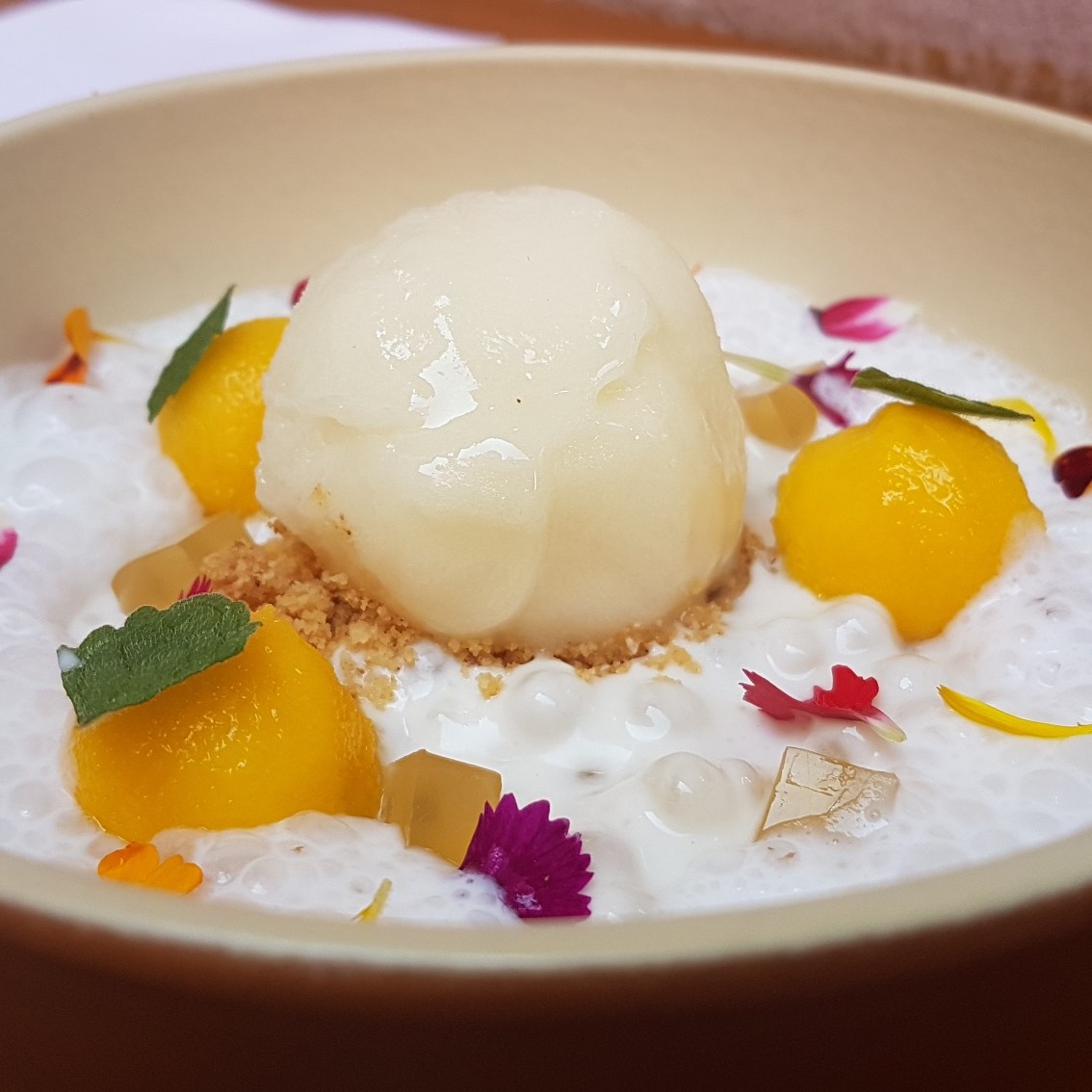 O AE! desacelera nos principais. A fartura do nhoque de mandioquinha grelhado, ragu de cogumelos sobressalgado, brócolis, castanha-do-brasil e queijo Tulha é satisfatória e saciante depois das entradas diminutas. Ligeiramente sobrecozido, o peixe vem com purê de couve-flor bem maillardento, denso e aveludado, farofa com aviú e molho de cenoura, laranja e gengibre. No geral, há um apego às raspas e sucos de limões, que poderiam ser interpretados como pontes entre os pratos ou, pela abundância e redundância, abafadores dos protagonistas e da identidade dos cursos. As sobremesas reaceleram a viagem com a “tarte tatin” acompanhada de cumaru, geleia super ácida, sorvete de mel e estragão feito sob encomenda pela vizinha Walnuts. Na outra, a bola de manga conversa bem com o cupuaçu, mas os sabores do coco e do uísque se perdem na dominância do delicioso frutado e acidez da fruta amazônica.