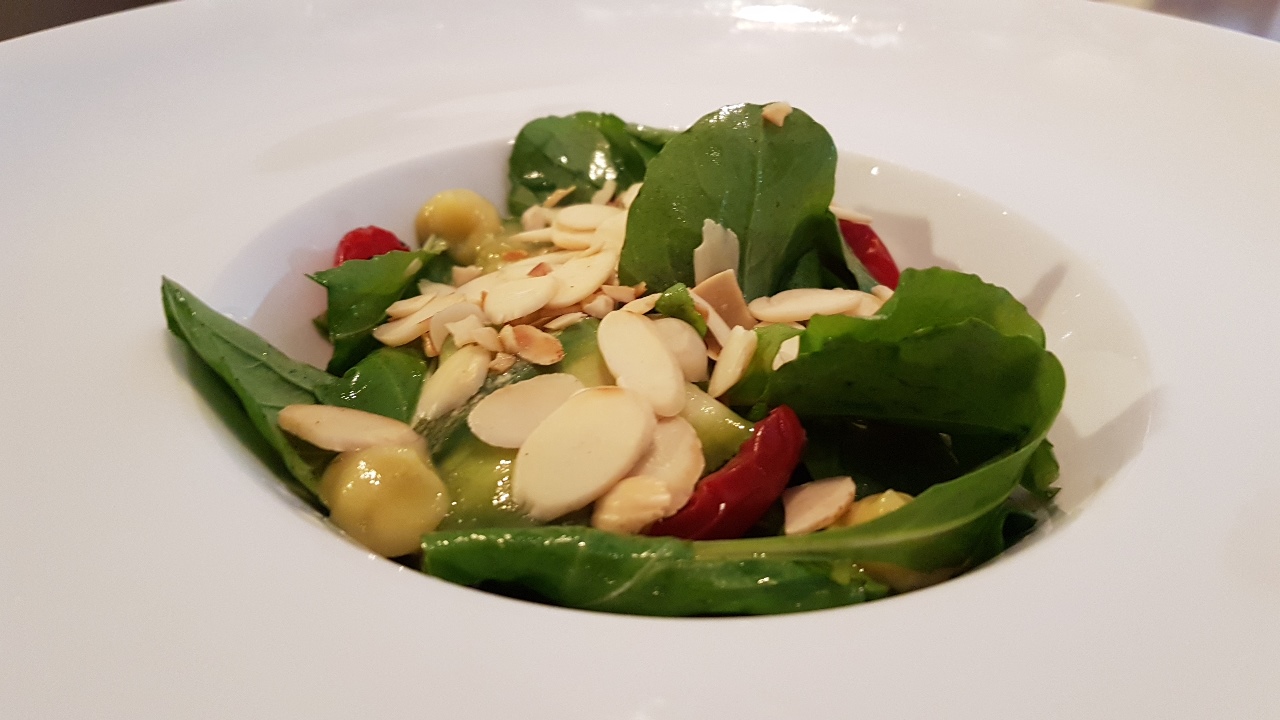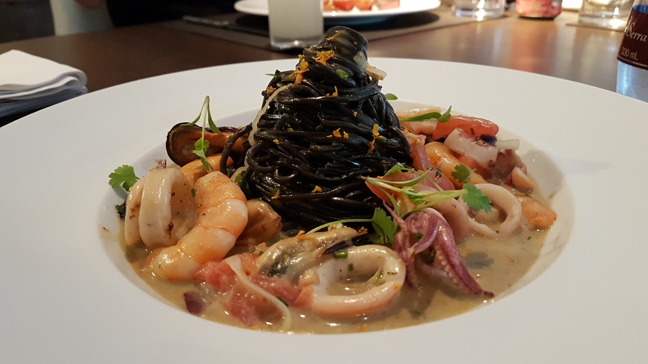A salada de rúcula, abobrinha, amêndoas, limão e siri desfiado e a salada de folhas ao molho de mel e limão-cravo são o simples bem feito: folhas frescas e vistosas, molhos docinhos, azedinhos e aromáticos. De principais, o arroz al dente com suã de porco um pouco sobrecozido e a massa negra com frutos do mar branquelos são sem brilho particular, mas têm sabores bons, limpos, característicos e bem servidos. O “bombom” de alcatra é o melhor prato do cardápio, super macio apesar de não tão “bombom” assim, lindamente grelhado, crosta por fora, lindo degradê por dentro. A doçura e o frutado do tomate bem maduro combinam soberbamente com a intensa defumação que lhe aplicam.