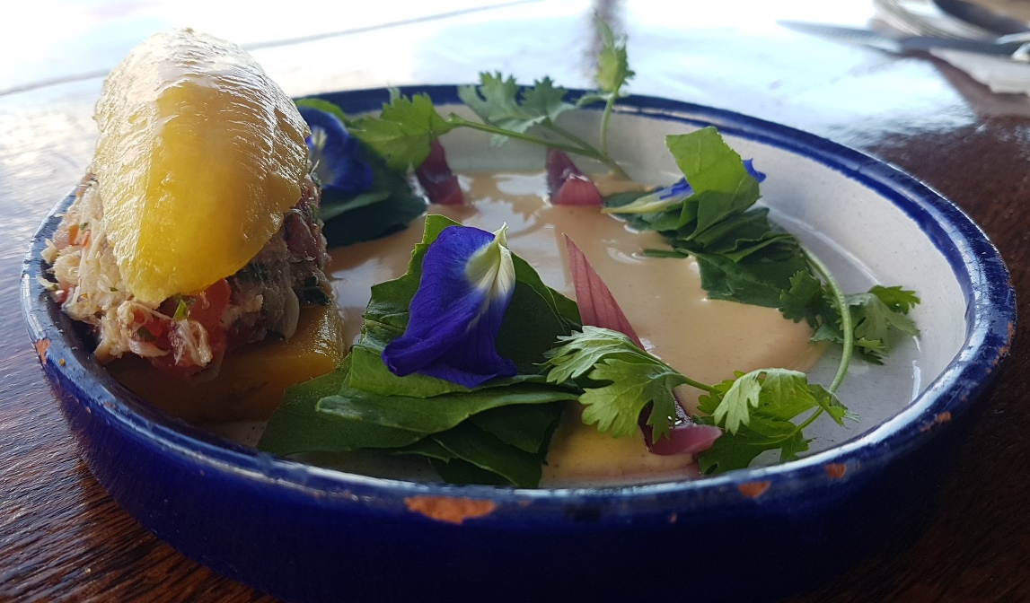 No Aratu, uma das entradas é um taco com tortilha de macaxeira coberta por creme azedo, queijo coalho derretido, camarões suculentos empanados e salsa (molho) picantezinha. Outra entrada são fatias de banana-comprida recheadas por um campeiro com siri desfiado bem temperadinho, uma salada esquisita de rúcula e uma maionese com “coral de siri” granulosa, pouco ácida e sem corpo. Um dos pratos principais é um tornedor de carne de sol macia e saborosa, crosta bem crocante e defumada, regado em manteiga de garrafa e acompanhado por aligot de puba e queijo coalho azedinho. O outro principal é uma mandala de peixe fresco, saboroso e bem executado, acompanhado por massa puba sem graça, purê de banana-comprida frutadinho, picles de cebola roxa e azeite com ervas.