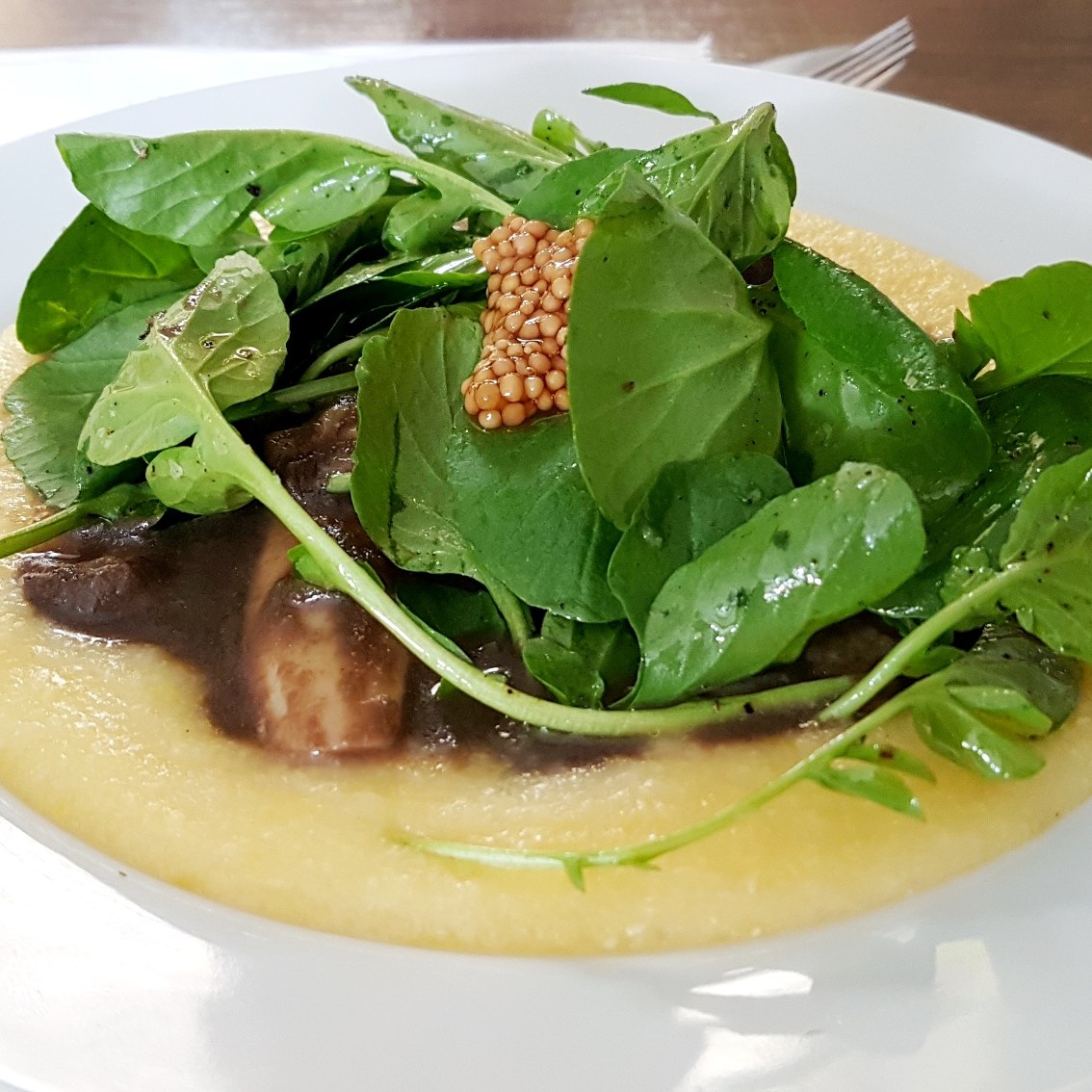 Mais conservadores, monótonos e medianos, os pratos principais não chegam a ser clichês, mas ninguém precisa de reza para combinar ancho com salada de feijão manteiguinha, ou polenta com agrião e ragu de cogumelos, ou costela de porco, creme de batata, brócolis e mostarda. A costela não está desmanchando, o ragu não chega a ter profundidade, as folhas estão machucadas e amareladas. Entendo a proposta “orgânica” e “zero desperdício”, também não quero que joguem fora, mas disfarcem num recheio de pastel ou caldo verde. É difícil defender salada assim quando pagamos R$15 num PF, imagina pagando R$70 no principal.
