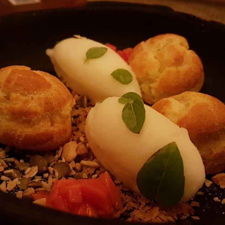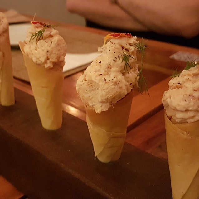 Eu gostei muito de um prato: a costela dourada e desmanchando, contrastada e complementada pelo frutado agridoce do tomate. O tapete de polenta ainda acrescentava um azedinho e fedidinho de queijo azul. Curiosamente, essa costela com tomate macedoine também pode ser vista no Cepa. Além disso, os cones de salmão defumado são bonzinhos, mas “bonzinho” é uma ofensa aos cones de salmão do Thomas Keller. Pessoalmente, gosto muito da liberdade que a Gastronomia tem com direitos autorais, o que é bom tem mais é que ser replicado, que a gente se lambuze em boas ideias. Talvez por ser cientista, só acho que a gastronomia como um todo poderia referenciar mais, não? É viajar demais querer citação?