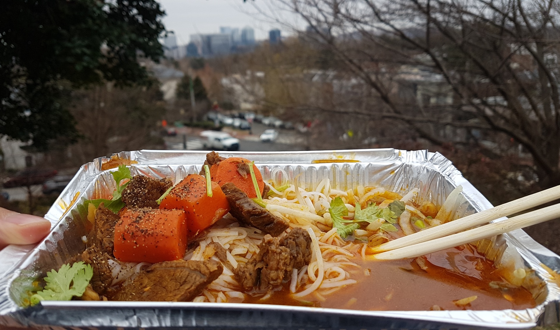 Pouco antes do Vietnã do Norte conquistar Saigon, Diana My Tran fugiu grávida do país com o marido e eventualmente se instalou em Washington, D.C. Décadas depois, em 2014, ela e os filhos, John e Diana, abriram o @simplybanhmi para oferecer o frescor da cozinha vietnamita na forma de bánh mì, phở e gỏi cuốn. Hoje, a simplicidade do restaurante causa estranhamento em Georgetown, mas ele chegou ao bairro antes das lojas de grifes e da Apple Store. Por conta da pandemia, fecharam o salão e passam a aceitar apenas pedidos para buscar ou entregar. Uma pena, os irmãos eram excepcionalmente amigáveis e bem-humorados no atendimento, puxando conversa com todo mundo e enchendo o saco um do outro com pegadinhas e cutucões. Peço a mesma coisa há 5 anos, o phở de carne bovina braseada e capim-limão, e ele está sempre impecável. Ao mesmo tempo em que é super pesado, também é super refrescante. A gordura e a carnosidade são contrapostas pelo ardido da pimenta, pelo mentolado do manjericão, pelo cítrico do capim-limão e pela agridoçura da cebola e cenoura. O resultado é comermos uma enorme tigela sem se cansar, nem se anestesiar, cada slurpada implora pela próxima. Se for algum consolo, ao menos esse bom fruto, a Guerra do Vietnã rendeu.