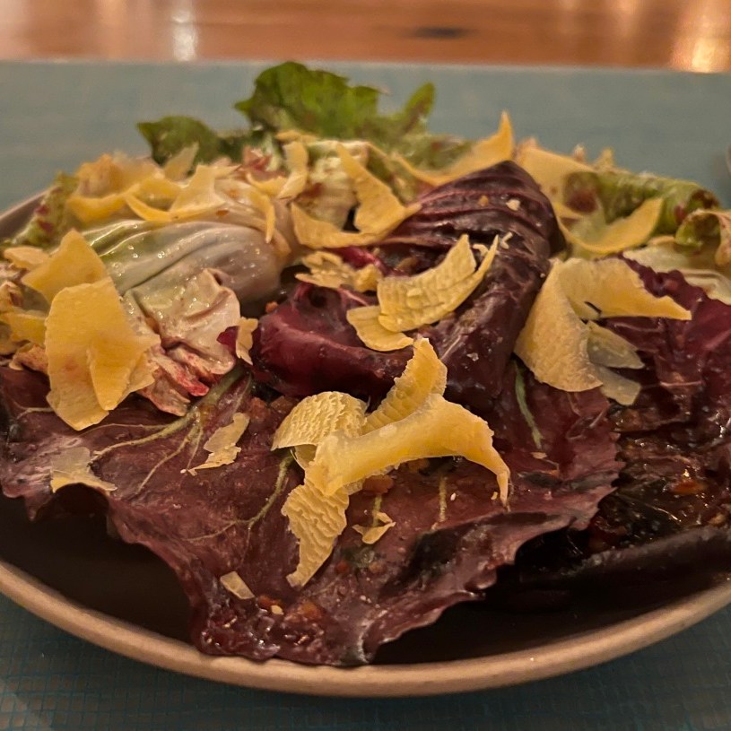 Os vegetais são espetaculares; seja numa simples, docinha, amarguinha, defumada salada de endívias, pera, queijo St. Malachi e bacon; seja numa entrada de nabos em que as raízes, talos e folhas vêm juntos, magicamente cada um em seu ponto, cheios de frescor e sabor, bem acompanhados de vieiras e maionese ácida e picante; sejam em rabanetes com ostras empanadas, salsão e um salivante molho de vinagre de arroz, pimentões e talos de alho jovem.