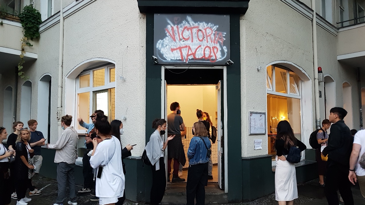 @VictoriaTacosBerlin faz parte do projeto mundial de gentrificação hipster que cobra €4 euros num taco e anuncia vagas de “taco assembly specialist” e “guest experience specialist” pedindo “hardworking, dedicated people who always manage to keep a positive attitude […] embrace each other’s strengths and differences […] and are not afraid to rewrite the rules in hospitality”. Uau. Claro que, sendo berlinense, vai um grau a mais no grafite, o ambiente é menos um playboy calculadamente bagunçado e mais um açougueiro mexicano que tomou ácido. Claro que, sendo berlinense, dois dos quatro recheios de tacos disponíveis são ovolacto, um é estrito, e um último tem carne suína.