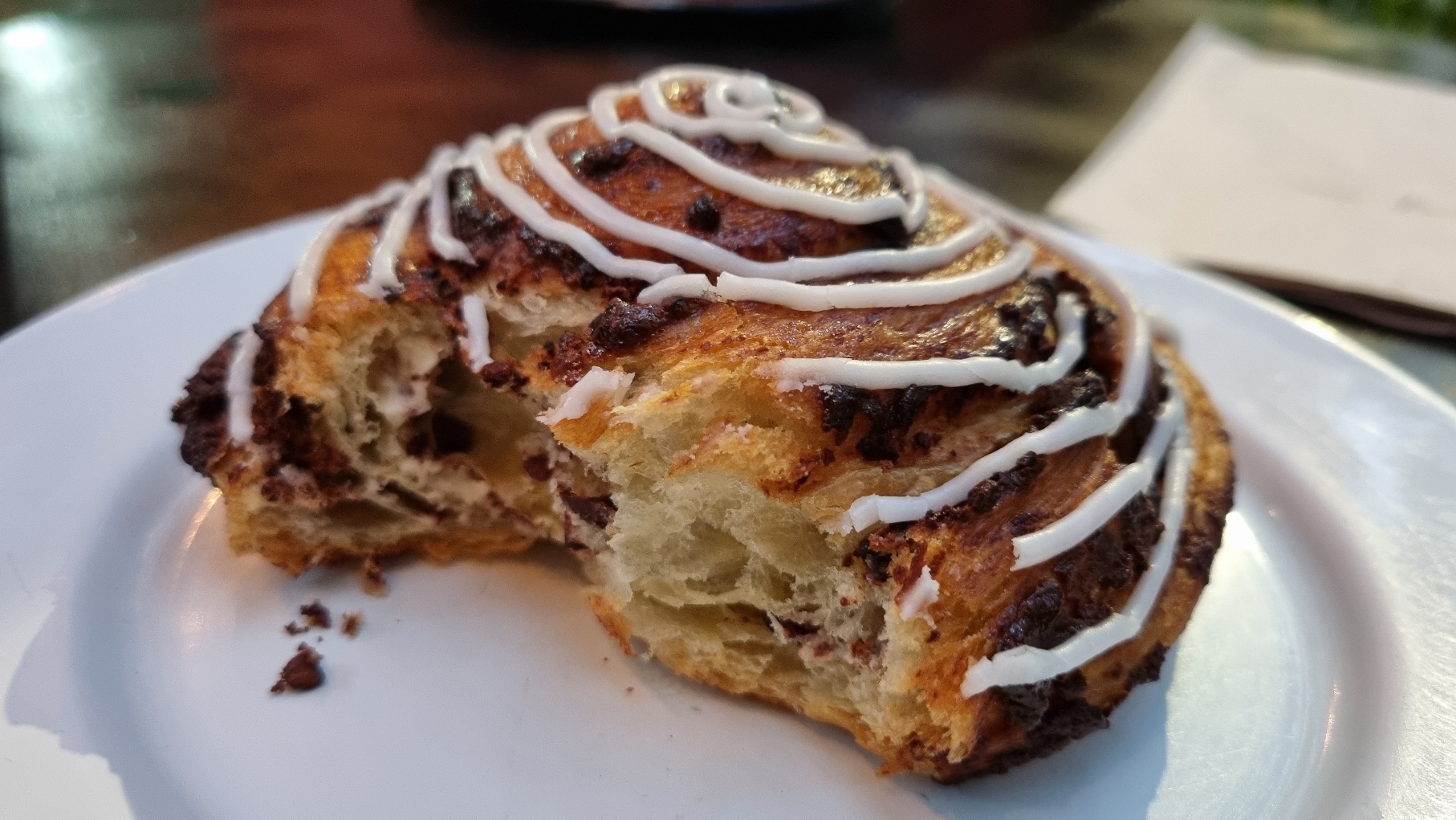 Assim como o @restauranterosetta, a @panaderiarosetta fica em Roma, um bairro jovial, rico, gringo e hipster da Cidade do México. Representativa do bairro, a padaria é linda, elitista e instagramável. Às 7h da manhã, as vitrines estavam cheias e reluzindo, os produtos recém-saídos do forno são dourados, enormes, brilhantes e encantadores. A surpresa é que o que reluz aqui é ouro, os confeitos são tão deliciosos quanto bonitos. Há nada de pretensioso ou revolucionário: farinha e açúcar brancos, fermento cerevisiae, manteiga comum. O fato é que mesmo o tradicional bem feito fica delicioso. Os brioches e massas folhadas são ricas e maillardentas como o diabo gosta, têm casquinhas vivas e estilhaçantes, interiores gordos e úmidos. Os recheios são sempre intensos de sabor e balanceados de gostos ácido e doce. Feitos de bons ingredientes in natura como maçã, goiaba (não, não é goiabada) ou estragão (não lembro de ter provado sem ser desidratado antes, achei bem parecido com erva-doce) bem dosados e aromáticos. Meu favorito acabou sendo o caracol de cacau com ricota e olha que eu tenho preguicinha de sobremesas achocolatadas. Achei que o “cacau” seria cacau em pó queimado, amargo, alcalino e morto, mas são nibs vivinhos da silva, bem frutados e de longa permanência. A ricota traz umidade, forte acidez e, estou imaginado?, uma lufada de ovelha que brinca de esconde-esconde. O glacê parece um enfeite bobo, mas oferece lampejos de doçura e crocância que contrasta deliciosamente com a acidez e umidade dos recheios. Ainda bem que não moro na Cidade do México, porque a diabetes já teria me levado. E eu teria ido feliz da vida, ou melhor, feliz da morte.