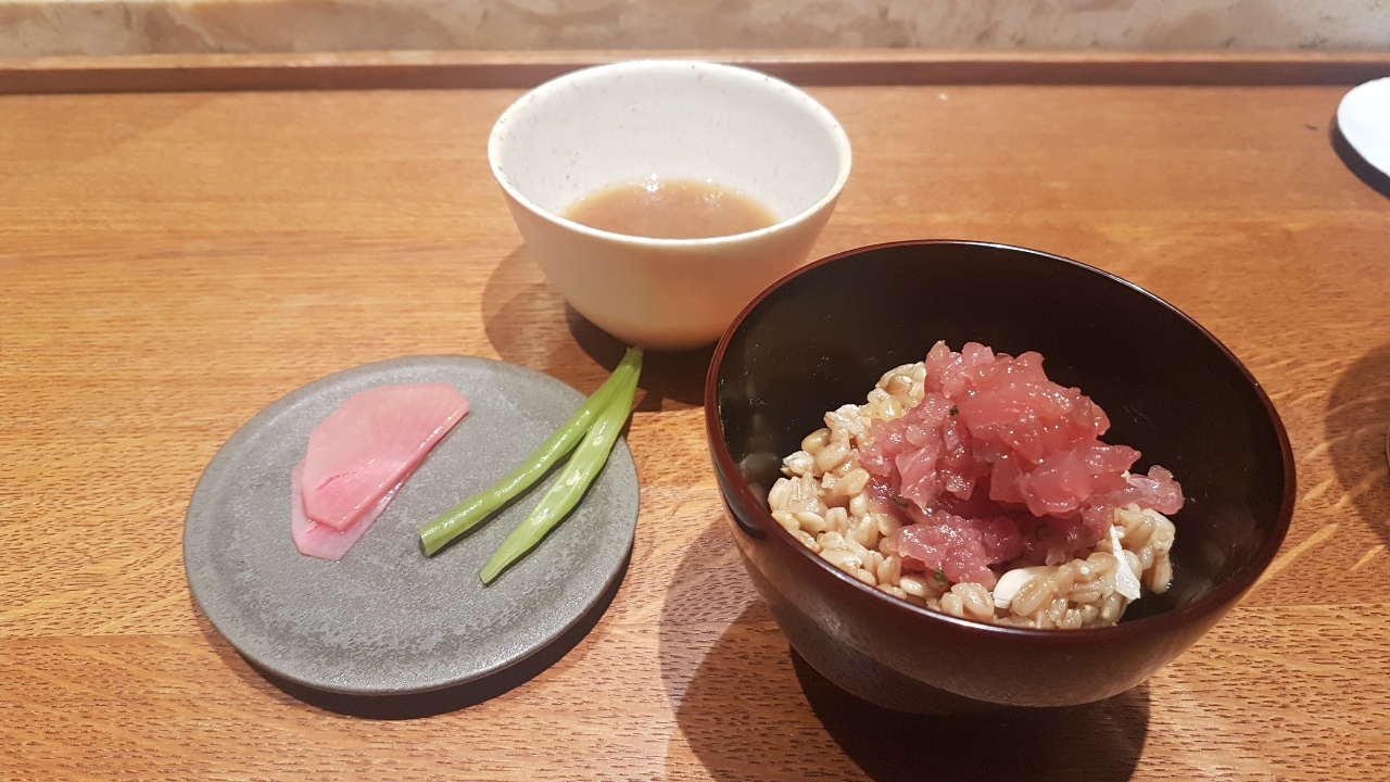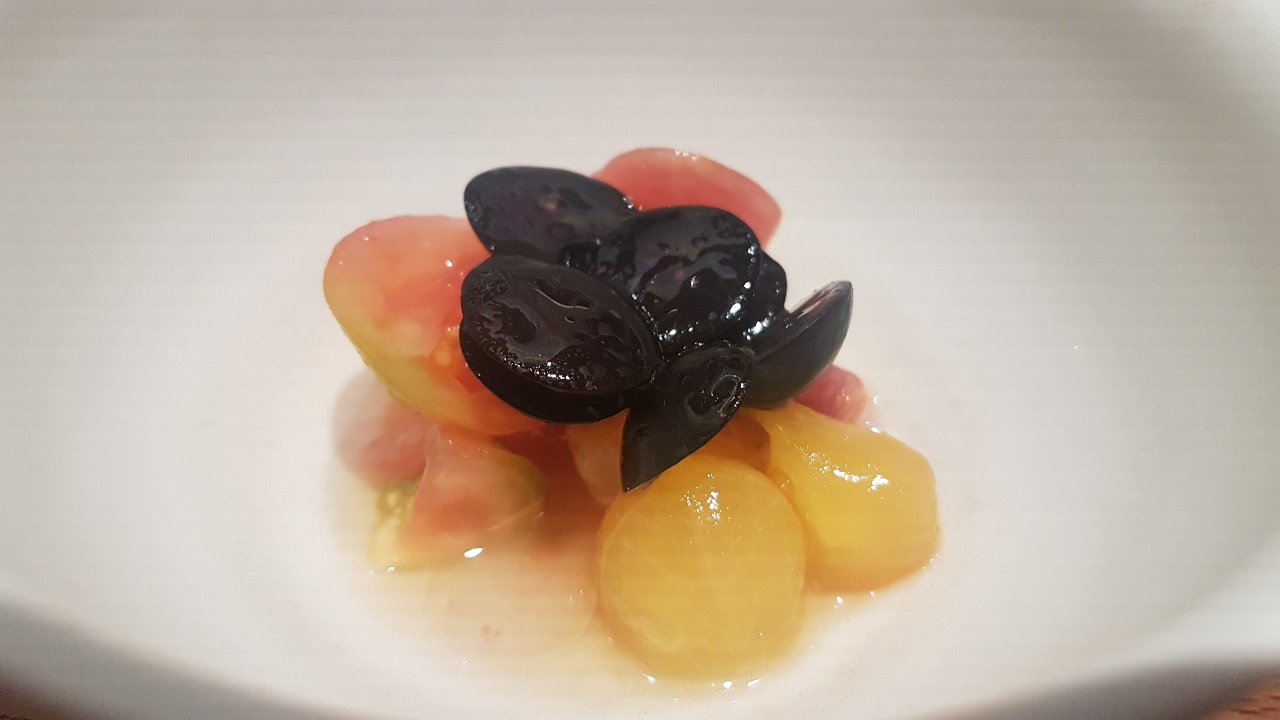 Para começar, o mais óbvio, o tempo da comida. Kombu colhido aos três anos, mel colhido há três anos, cavala maturada uma semana, speck maturado cinco meses, ameixa grelhada dez segundos, atum grelhado duas horas, missô fermentado por quatro anos, manteiga batida hoje, preserva de yuzu do inverno passado, ameixa do fim do verão. Quando fui, eles tinham acabado de receber um atum de 51 quilos e, portanto, a refeição todo girou em torno dele, suas diferentes partes e diferentes formas de fazê-las. Na semana seguinte, eles recebem outra coisa e servem um cardápio completamente diferente. Aí, tem o tempo que o Ernst investe em excursões aos sítios de Berlim, às vinícolas na França, ao produtores do Japão, pois usam ingredientes única e exclusivamente de fornecedores que conhecem pessoalmente. Os mais curiosos podem acompanhar as viagens nos stories no Instagram, eles levam isso a sério.