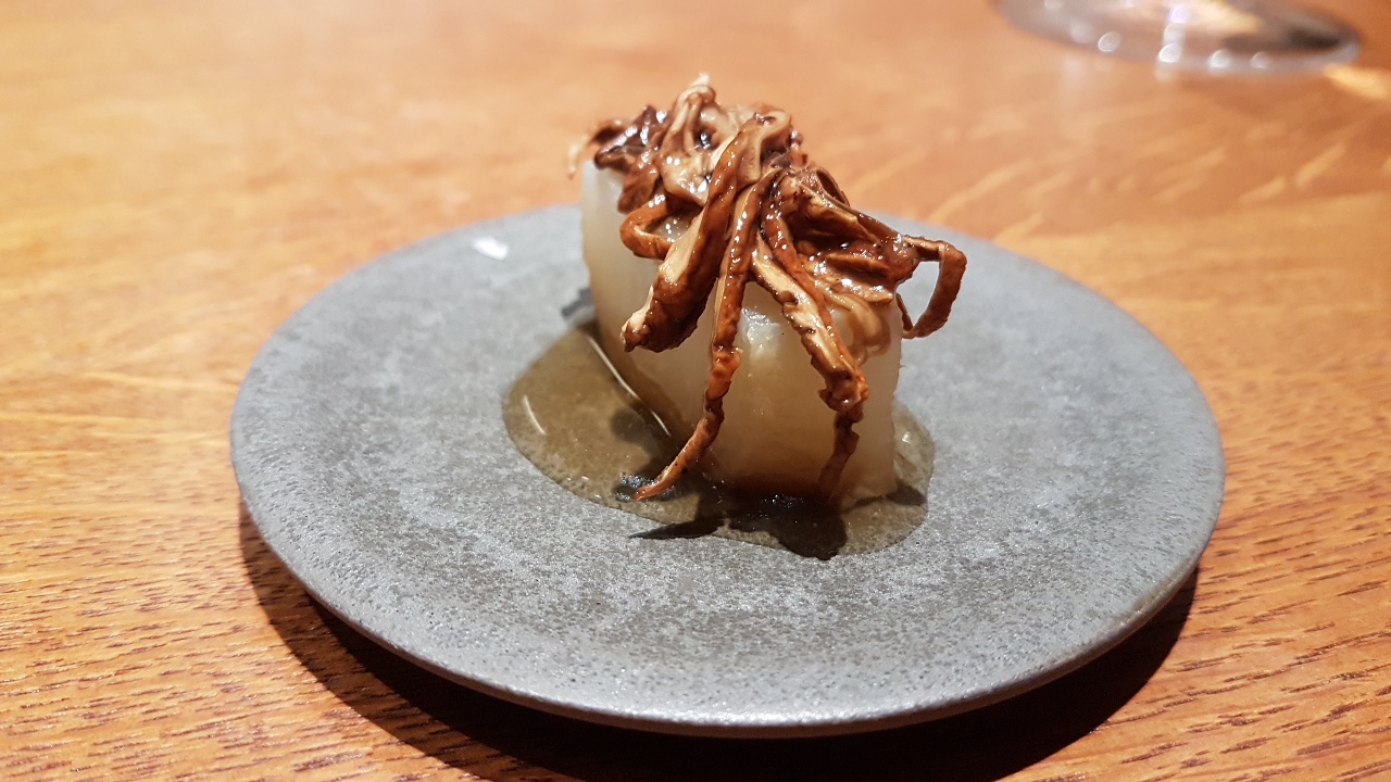 A refeição também leva seu tempo. São três horas para seis vinhos e mais de 30 cursos. Ironicamente, é uma refeição inteira de primeiras mordidas, sem chance de explorar a temporalidade dentro de cada prato. Acho tudo muito interessante, executado à perfeição e também fisiologicamente improvável que alguém consiga aproveitar 30 cursos. Eu, pessoalmente, gosto de degustações que oferecem e dominam a construção de pratos de diferentes tamanhos e complexidade. Mas é estilo, é proposta. Em termos de sabor, nem tudo que o Ernst serve é incrível, e a sazonalidade e o aproveitamento integral dos ingredientes geram redundâncias. O @davidmxml ficou impaciente com tanto dashi e atum, me lembrando da tortura que foi o Apèrge, em que as pessoas começaram a se levantar e ir embora depois de quatro horas e nenhum sinal das sobremesas.