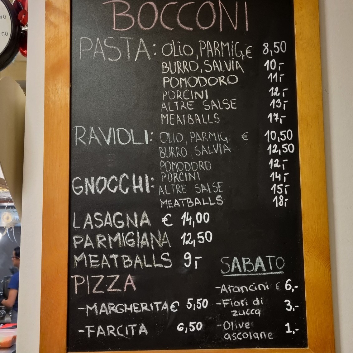 Fico feliz e animado ao entrar no @BocconiPastaItaliana, é exatamente o tipo de lugar que eu adoro adorar: uma lojinha austera, algumas mesinhas, comida simples, direta, interessante e feita por um punhado de gente animada e barulhenta misturando italiano e neerlandês na cozinha separada do salão apenas por um balcão de lindezas apetitosas. Varado de fome, quero uma lasanha, enorme e pesada. Pergunto do que são, ela responde que uma é lasanha tradicional e a outra é vegetariana. O que vai na vegetariana? Berinjela, queijo, molho, sem carne, sem massa… ela hesita meio segundo, balança a cabeça e fala mais para si mesma do que para mim: “non è lasagna”. Morri, absolutamente impagável. Depois dessa, tive de escolher a lasanha que é lasanha, né.