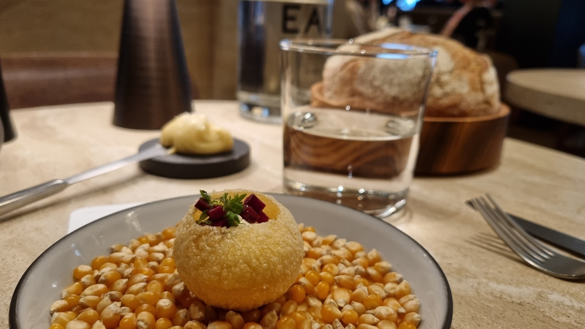 No cardápio especial de Natal, o amuse junta tuille, queijo de cabra e beterrabas assadas: um clichê que funciona. O pãozinho de sal, farinha branca e fermento cerevisiae é pouco complexo, mas com crosta elegante, leve sabor de biscoito de polvilho e raro frescor. O salmão ordinário foi o ponto fraco da entrada liderada pelo leve e frutado gaspacho com beterraba e creme fresco com aromas cítricos refrescantes. O filé de veado, repolho tostado, cogumelos e purê de armoracia do principal estão bons sozinhos, só não se conversavam muito. A torta desconstruída de maçã com sorvete de canela estava perfeita ao manter os sabores e mudar a apresentação.